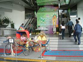 | KLタワーの正面入口 | マレーシア民俗楽団がお出迎え | この先の高速エレベーターで約1分 276mの大パノラマが待つ! |