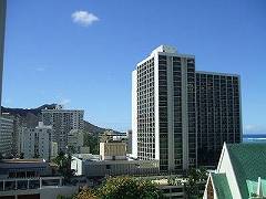 ホテル自室から辛うじてダイヤモンドヘッドが
