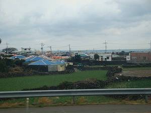 | 典型的な済州島のお墓です 土地の持ち主と墓の持ち主は違う場合も多いとのこと いたるところに喉かな牧場がある |